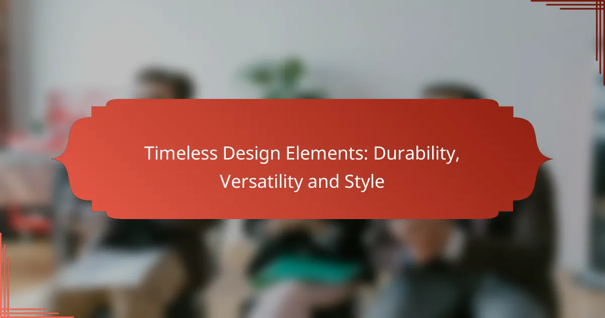 Timeless design is characterized by styles that remain appealing and functional over the years. Key styles include mid-century modern, industrial chic, and minimalist aesthetics, each offering unique features that contribute to their lasting appeal.